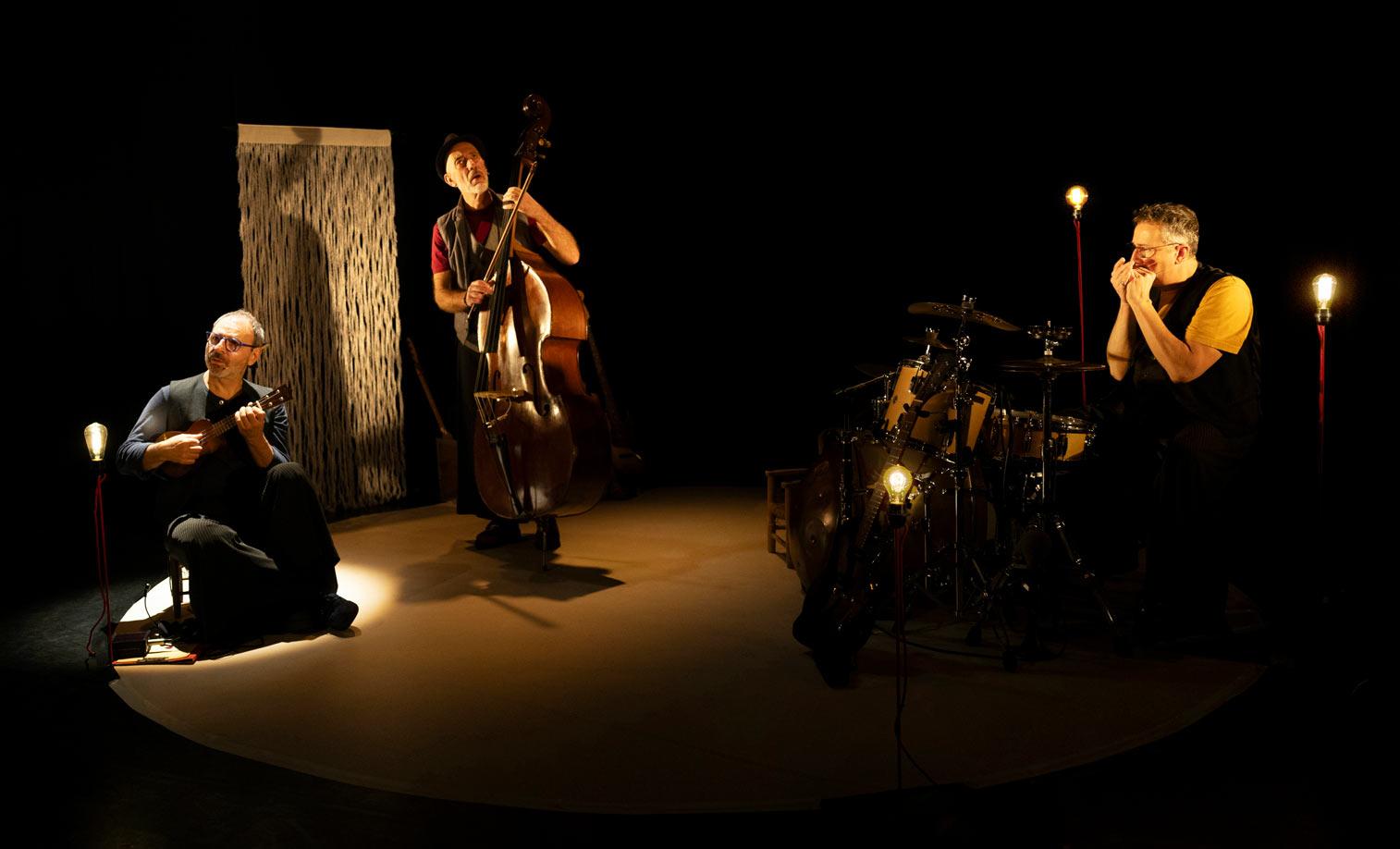 Avec Hervé Peyrard, Laurent Chieze et Ludovic Chamblas / Son Agop Djevahirdjian Scénographie et costumes Sylvain Luba / Lumière Julie Berthon